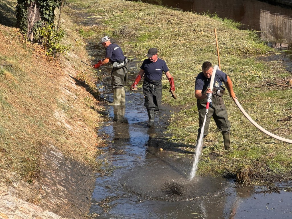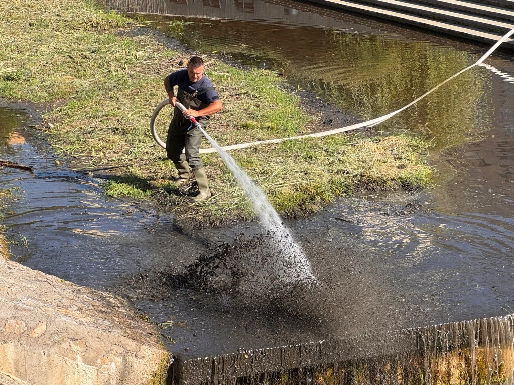 Csütörtök délelőtt megtisztították a Szinva patak medrét Diósgyőrben a II. János Pál pápa téren. A szakemberek nagynyomású géppel, mintegy 30 bárral, a tűzoltóság segítségével tudták takarítani és meglazítani egyáltalán a lerakódott iszapréteget. Ezt követően pedig a Városgazda munkatársai távolították el a sok-sok köbméternyi üledéket és iszapot.